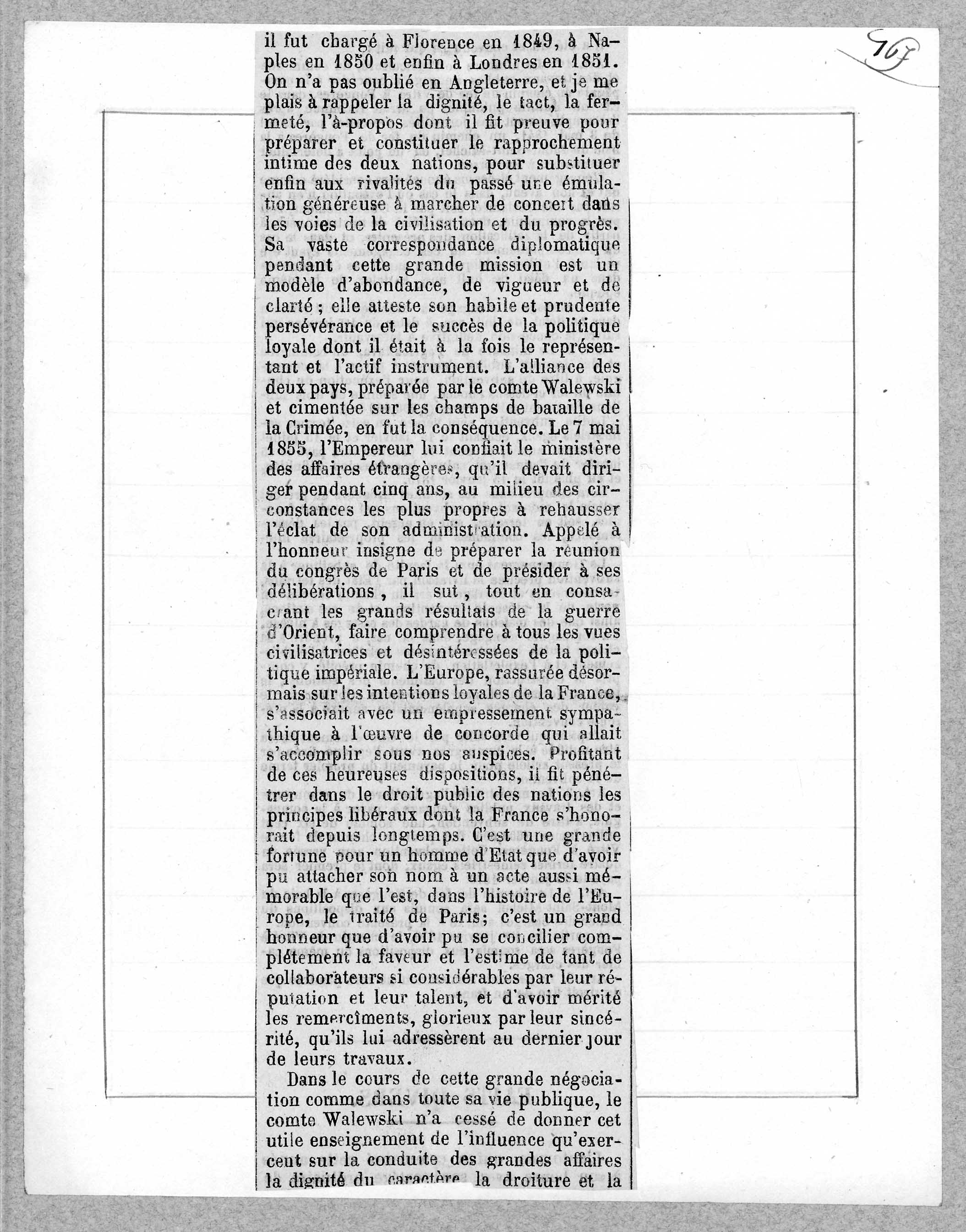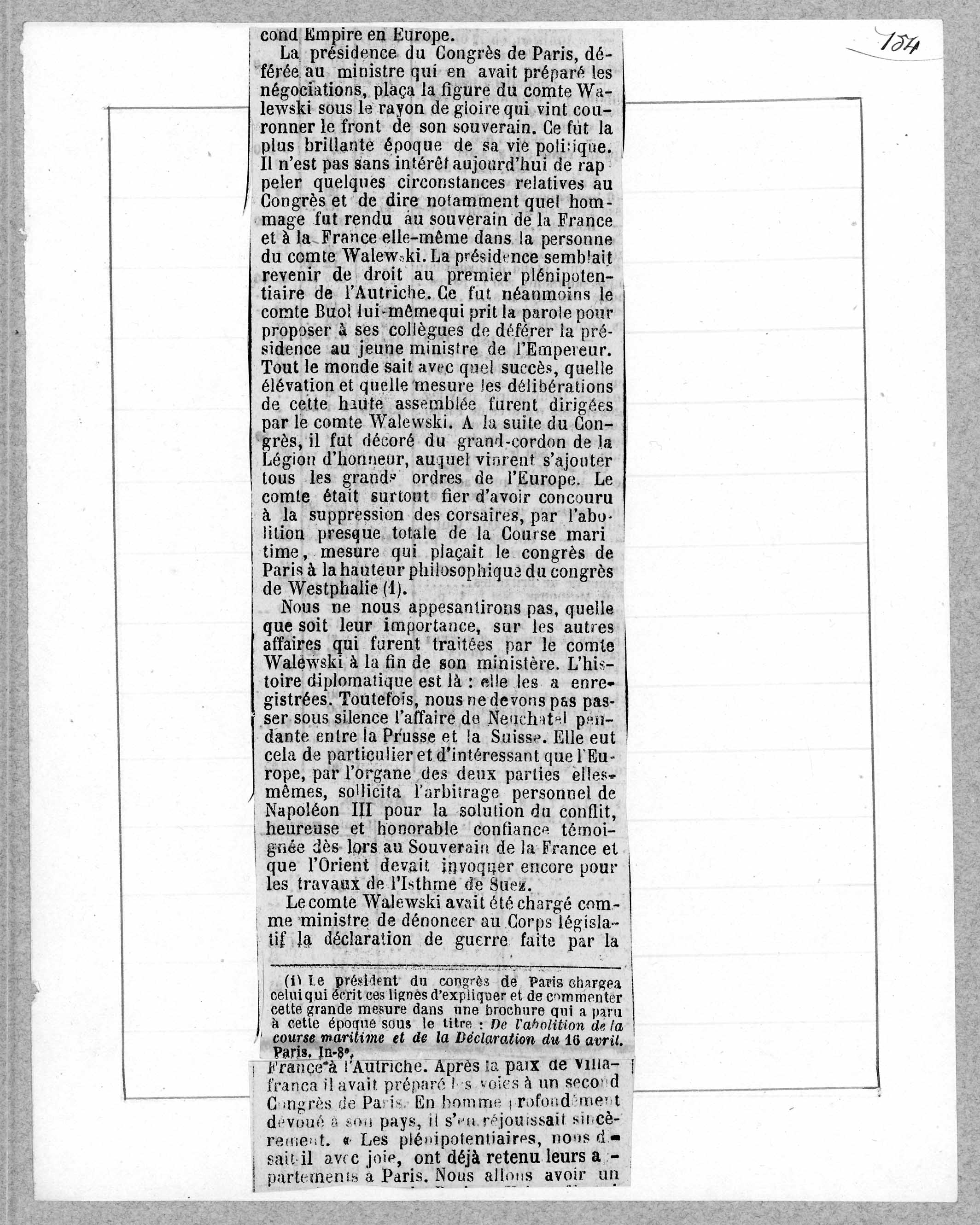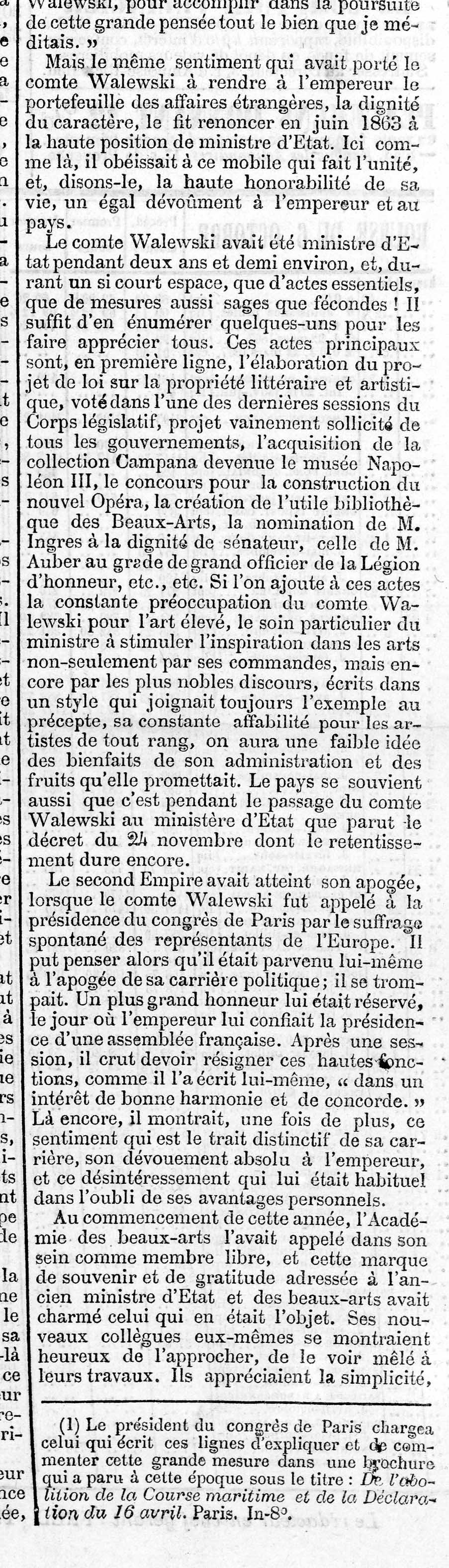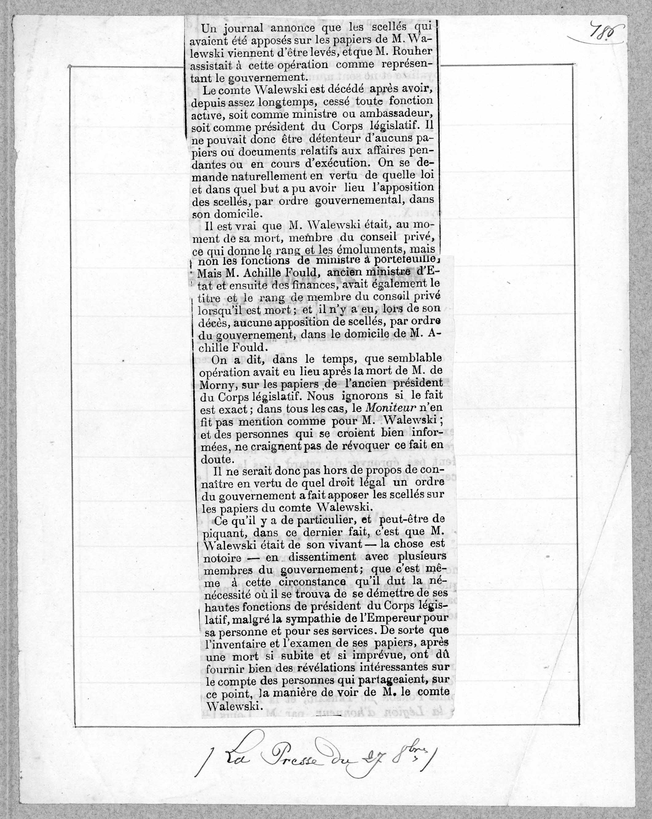 Revue de presse après le décès du Comte Colonna Walewski le 27 septembre 1868 à Strasbourg.