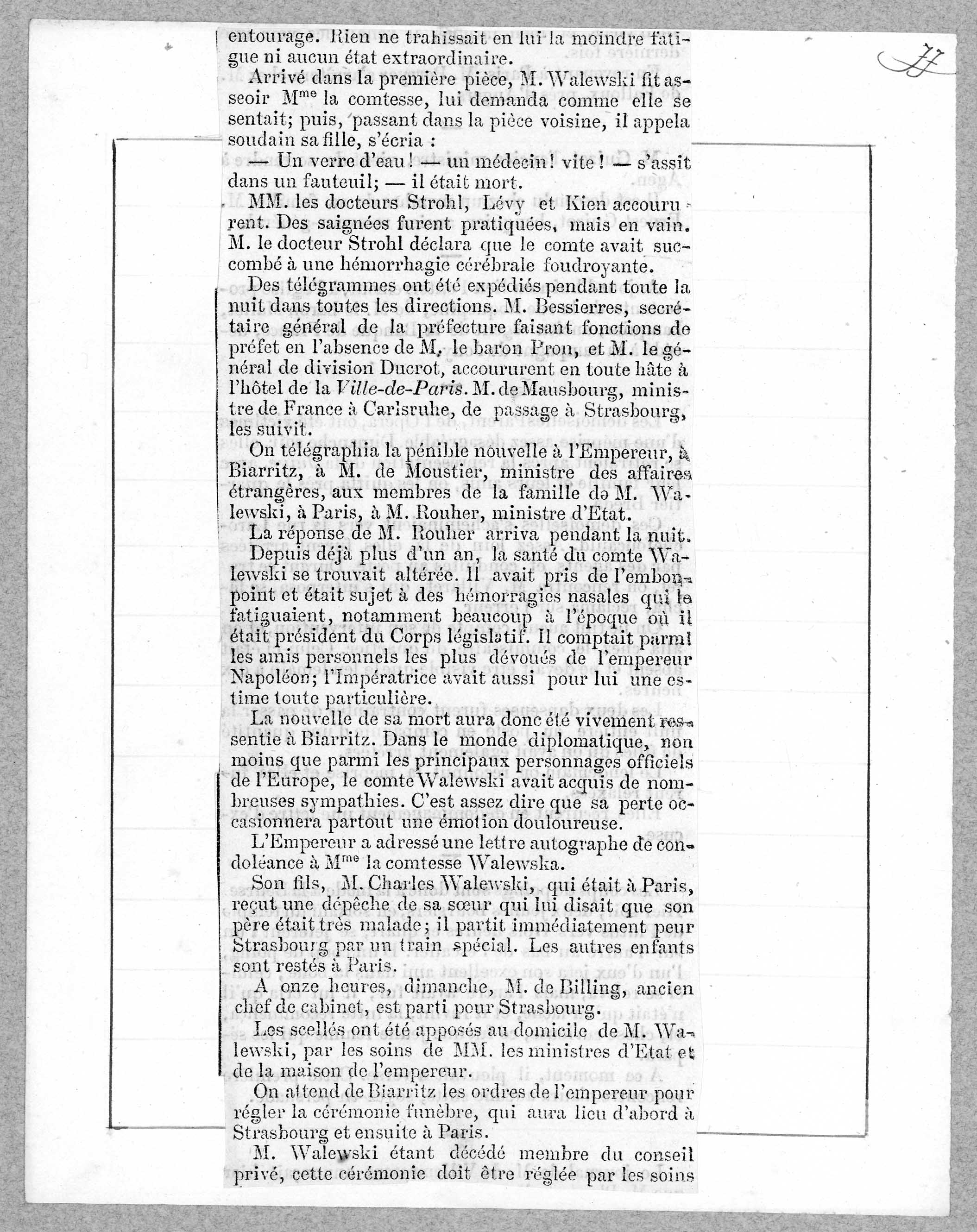 Page 50 ...Le Courrier du Bas Rhin du 29 donne les détails suivants sur la mort de Mr Walewski |